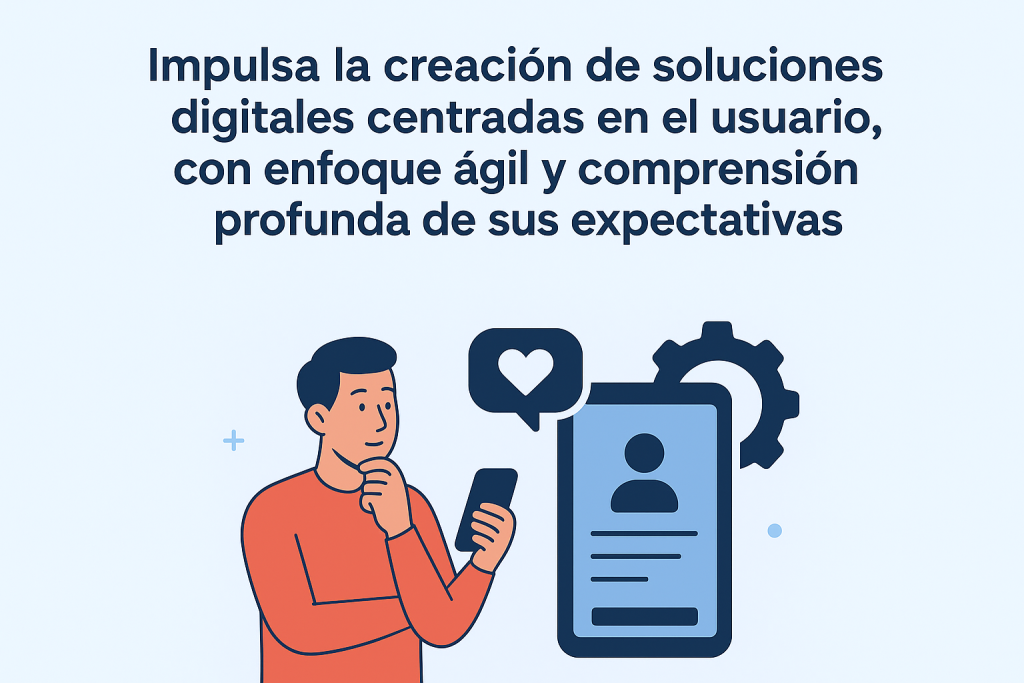Impulsa la creación de soluciones digitales centradas en el usuario, con enfoque ágil y comprensión profunda de sus expectativas.